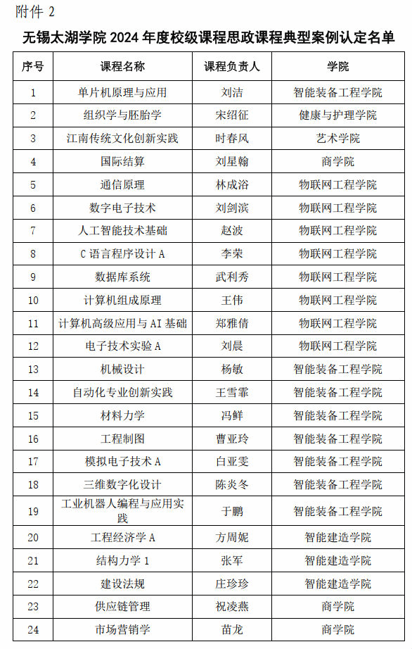 为深入学习贯彻习近平总书记在全国教育大会上的重要讲话精神,全面构建新时代学校思想政治教育体系,推进高校课程思政高质量建设,把课程思政作为全面提高人才培养质量的重要任务、建设高质量教育体系的重要内容、落实立德树人根本任务的重要抓手。根据省教育厅《关于征集江苏省普通本科高校课程思政典型案例的通知》精神,学校评选出2024年度校级课程思政专业典型案例8项,校级课程思政课程典型案例50项。