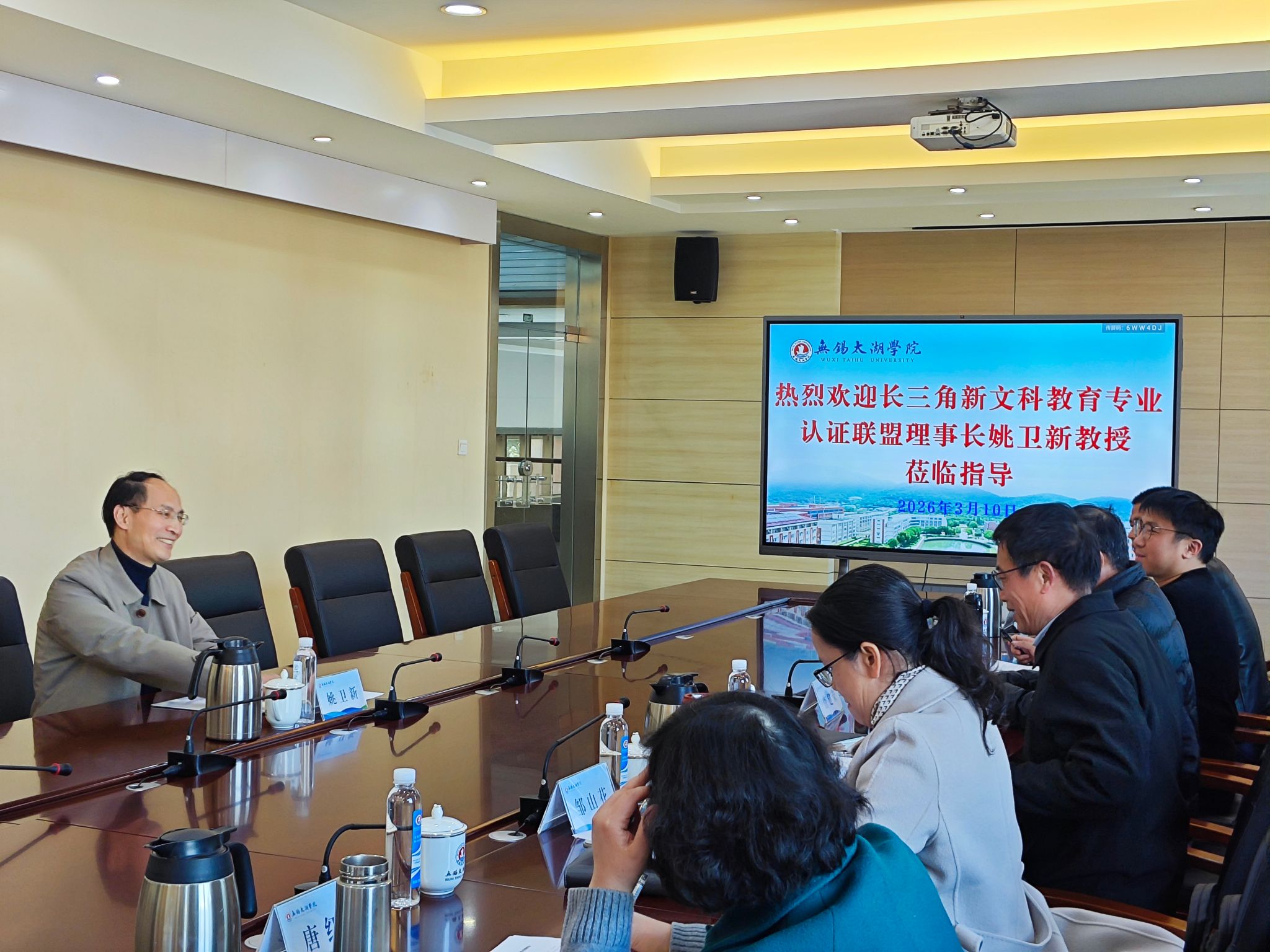 会上,副校长吴健荣代表学校对姚卫新理事长的到来表示热烈欢迎,并简要介绍了我校的办学历史、发展现状。吴健荣指出,我校高度重视新文科建设与专业认证工作,期待在联盟指导下,进一步提升文科专业建设水平和人才培养质量。教务处副处长吴阳介绍了我校新文科建设的整体思路与规划,各专业负责人分别介绍了前期工作进展情况,教务处处长邹山花做了补充发言。