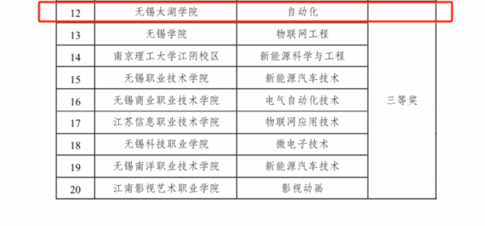 近日,无锡市教育局、无锡市发展和改革委员会、无锡市工业和信息化局发布了《市教育局等三部门关于公布2024年无锡市高校产教融合示范专业名单的通知》(锡教函〔2024〕125号),我校申报的物联网工程、自动化专业分别获得二等奖与三等奖。