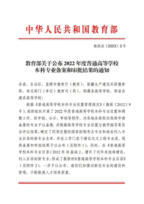 近日,教育部公布了《关于公布2022年度普通高等学校本科专业备案和审批结果的通知》(教高函[2023]3号),我校申报的智能交互设计、药学、助产学三个本科专业全部获批。