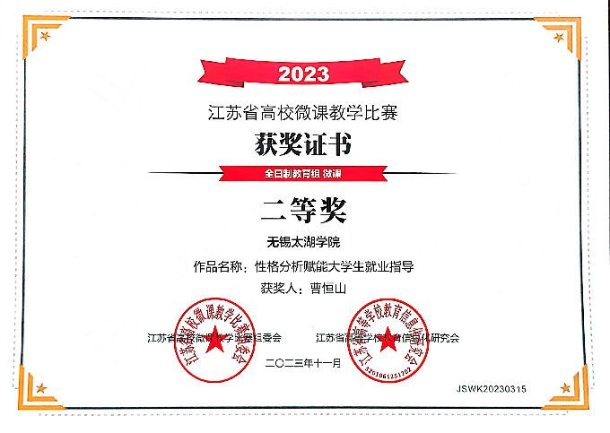 近日,江苏省高校微课教学比赛结果揭晓。我校艺术学院教师彭青、商学院教师曹恒山分别荣获微课类比赛二等奖,苏格兰学院教师李霄翔、蒋学清和RichardRyan荣获微课程类比赛三等奖。