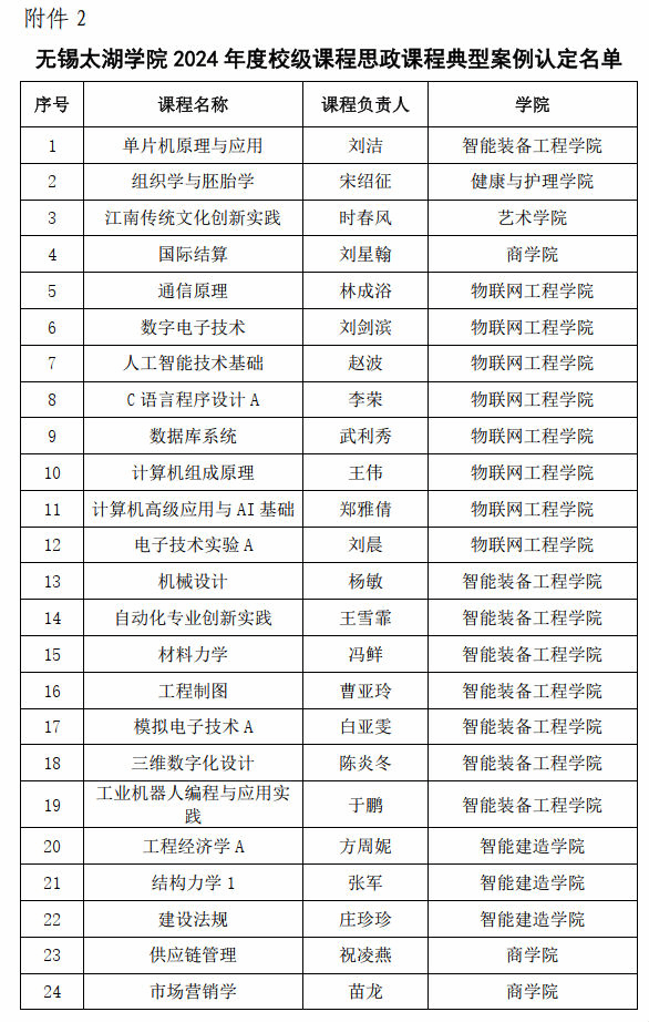 为深入学习贯彻习近平总书记在全国教育大会上的重要讲话精神,全面构建新时代学校思想政治教育体系,推进高校课程思政高质量建设,把课程思政作为全面提高人才培养质量的重要任务、建设高质量教育体系的重要内容、落实立德树人根本任务的重要抓手。根据省教育厅《关于征集江苏省普通本科高校课程思政典型案例的通知》精神,学校评选出2024年度校级课程思政专业典型案例8项,校级课程思政课程典型案例50项。